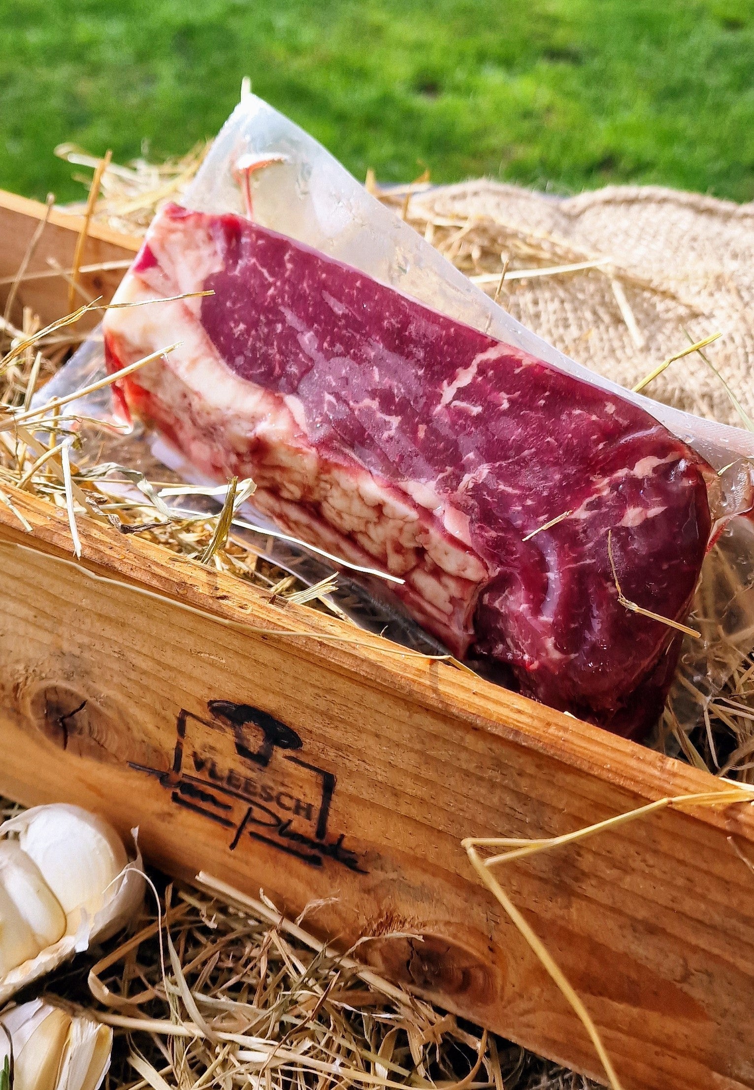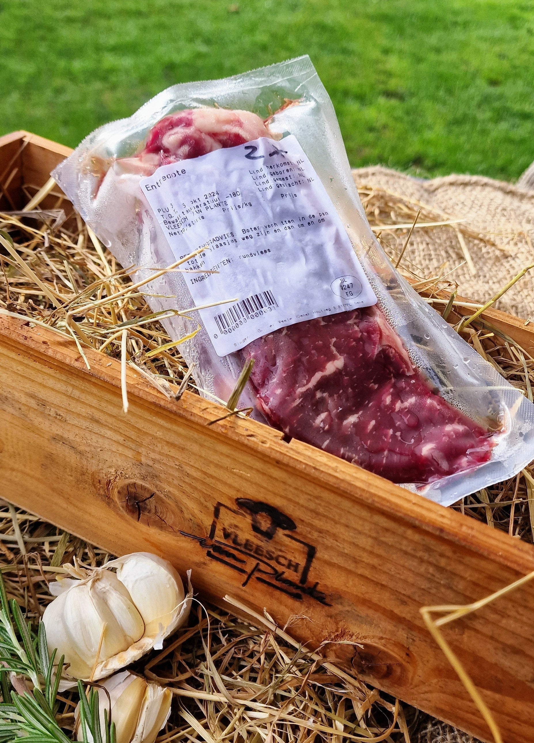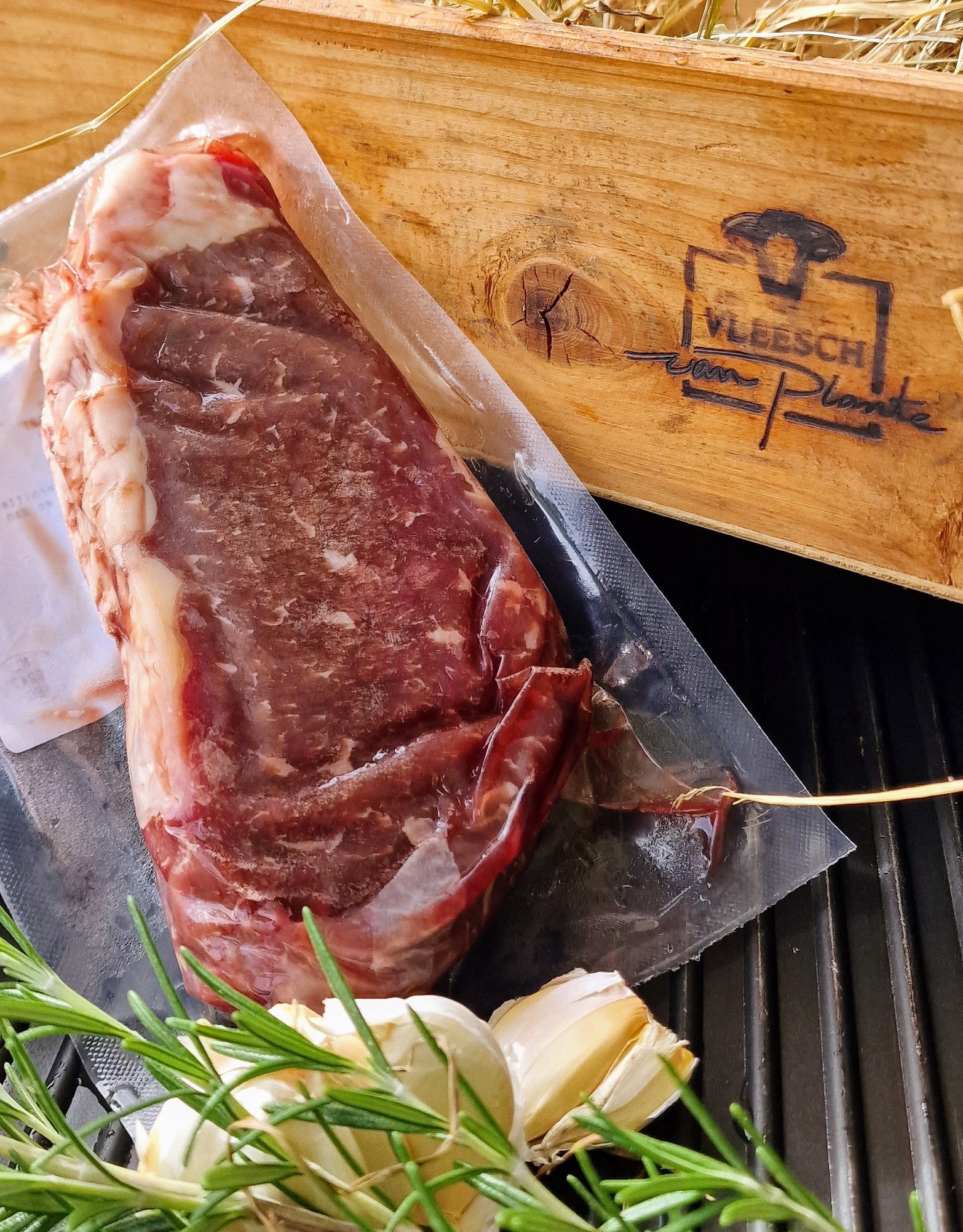 Entrecote van de dunne lende, mooi afgesneden met een dun randje vet. Het vetje geeft extra smaak.